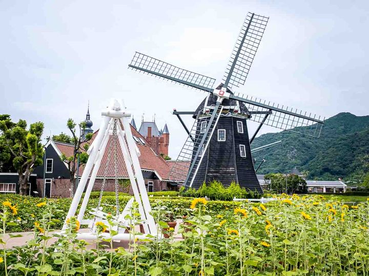 9位は長崎県にある日本一広いテーマパーク「ハウステンボス」。ヨーロッパの街並みを再現し、花畑には風車が回り、運河は海へとつながっています。季節の花が咲き誇る花園や、写真映えするカラフルな街並みとお城、そして壮大なイルミネーションや花火など、見どころがいっぱいです。
