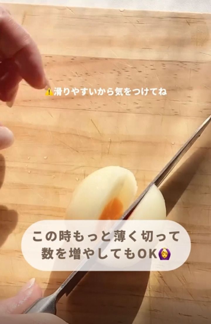このとき、3分の1、4分の1…と薄く切ることで、目玉焼きの数を増やすことができるとのこと。