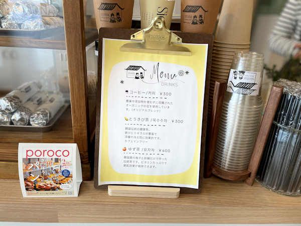 キンパの販売だけかと思いきや、ドリンクも売られていました。ドリンクは、コーヒーととうきび茶が、それぞれ300円。ゆず茶が400円。