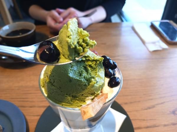 黒豆と抹茶アイスなんて、ベストパートナーですよね。さっそく一緒にスプーンに乗せてぱくり。