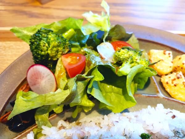 フレッシュサラダもついていて、ヘルシーな一皿。気兼ねなく完食できちゃいます!