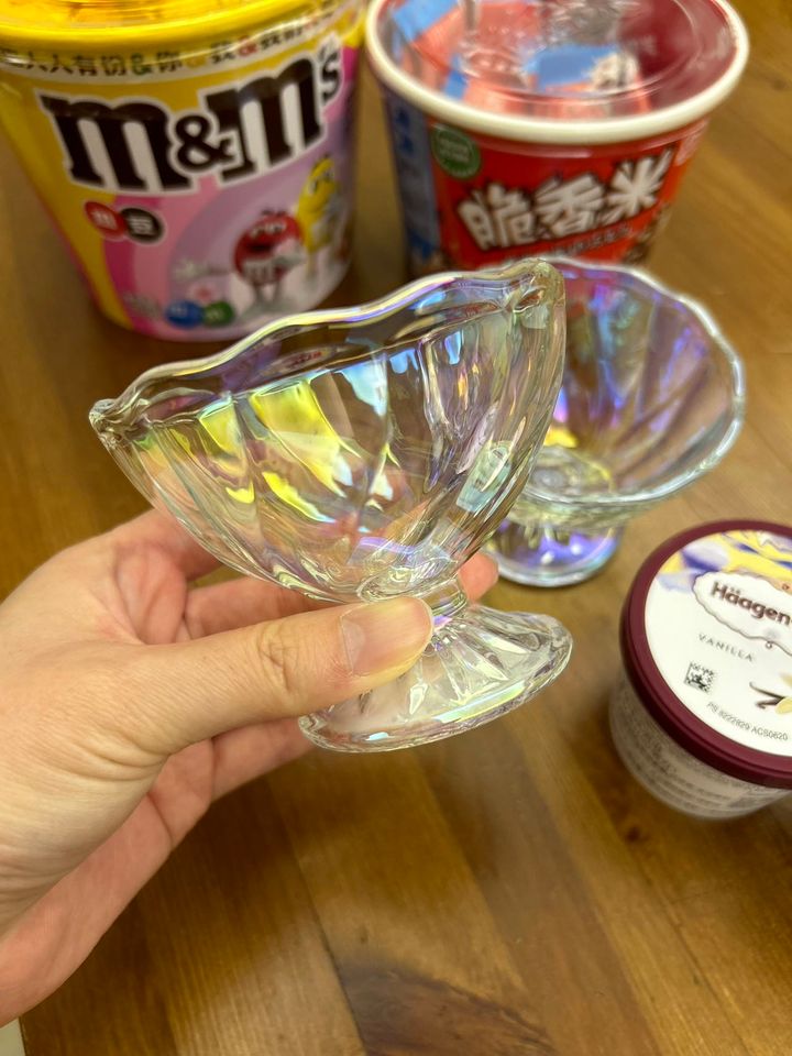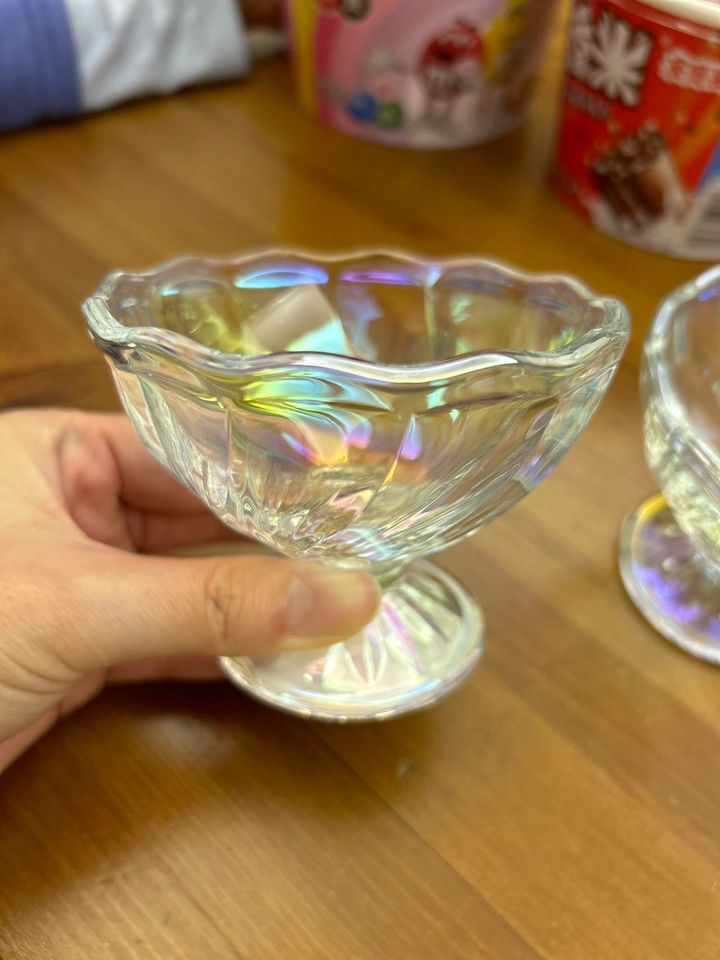セリアを通りがかった時に一目惚れしたオーロラデザートグラス。