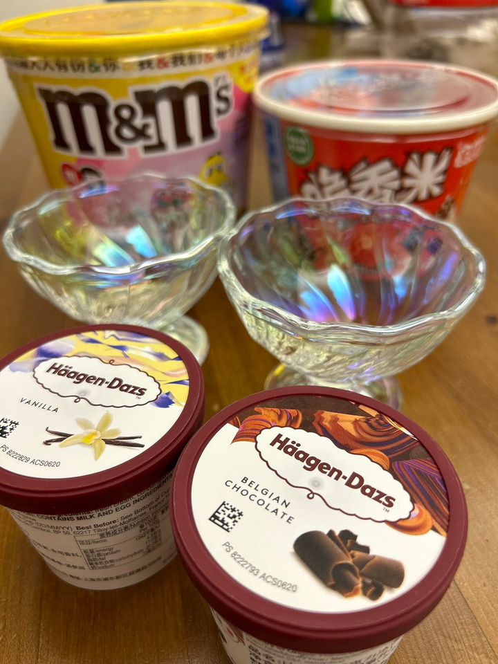 ただアイスにお菓子を乗せただけですが、とっても可愛くできました。