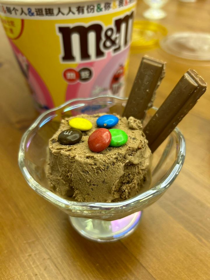 私は家にあったアイスクリームとチョコレートをそれらしくトッピング!