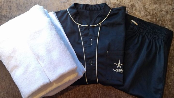 タオルやルームウェア、ミネラルウォーターなども用意され、棚や電源ボードなどにアクセントを加えるピンクゴールドのスチールはカンデオホテルならでは。エアコンも個別空調が可能です。