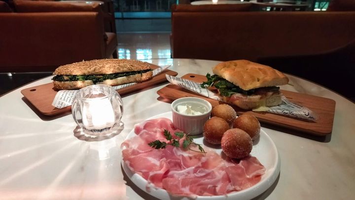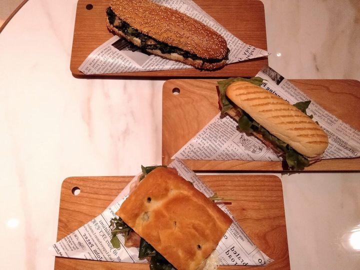 「スモークサーモンとクリームチーズ」や「生ハムとトマトとチーズ」「ほうれん草とマッシュルーム」の自家製パニーニ各858円(税込)などのほか、生パスタなどもそろっています。