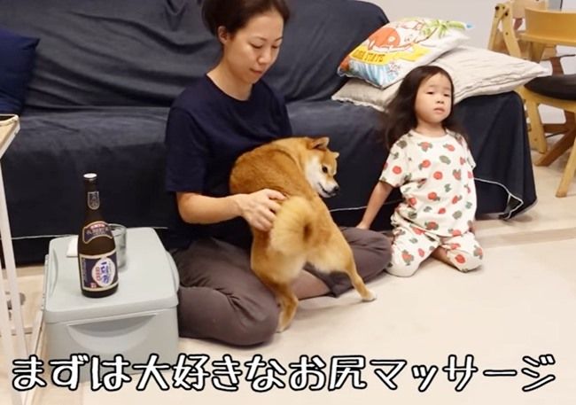 ママが花子ちゃんのご機嫌取るため、大好きなお尻マッサージをしてあげます。