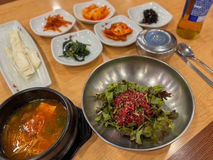 清潭洞エリアで有名な高級焼肉店「ヨンチョンヨンファ」。ひとり旅におすすめなのが、ビビンバなどのご飯ものメニューです。特にユッケビビンバは、今まで食べた中でNo.1と言っても過言ではないレベル。ユッケは臭みもなく新鮮で柔らかく、一度は試して欲しいおすすめグルメです。