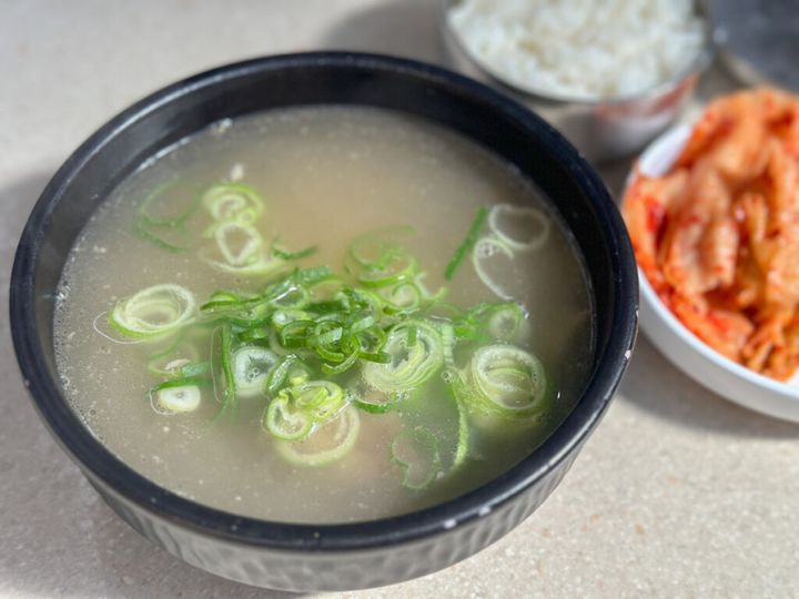 食堂のような雰囲気で、ひとりでサクッとご飯を食べたい時にもおすすめ。ソルロンタンは調味していない状態でサーブされるので、塩で味を調整して食べてくださいね!卓上に置いてある青ネギを入れるのも忘れずに。