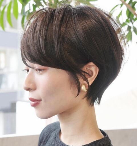 大人っぽさとキュートさを合わせ持つショートボブもトップに重みを加えるように仕上げれば、力の抜けた雰囲気とともに洗練度が一気に引き上がります。スタイリングもヘアワックスで髪流れを整えるだけでOKなので、時間をかけずにスタイリングできるのも嬉しいポイントです。