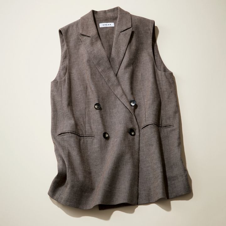 メンズライクなオーバーサイズとボックスシルエットで、カッコよく着られる。ジレ¥47,300(サクラ/インターリブ)