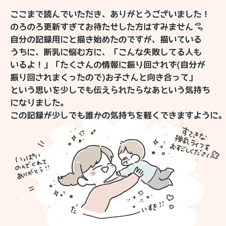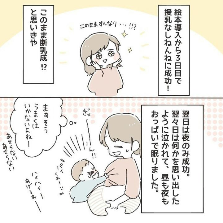 うまくいかない焦りと自分の都合で始めてしまった責任感でつらい思いも…。しかし、一般的な考えにはめるのではなく、自分たちのペースで無理なく進めたことで、精神的にも落ち着いて断乳を進められたのではないでしょうか。