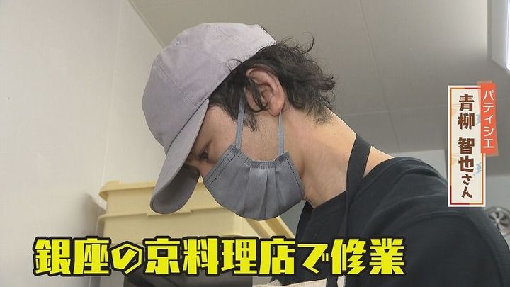 パティシエの青柳さんは銀座の京料理店で修業した経験を持つ異色のパティシエ。
