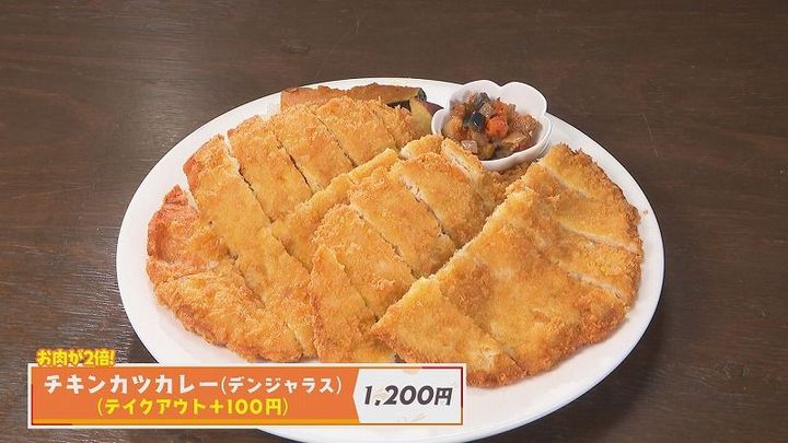 ご飯が見えないくらいお皿いっぱいにチキンカツ乗っています。