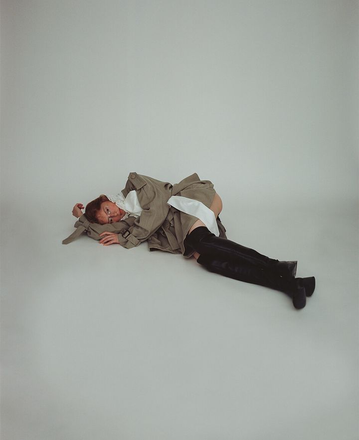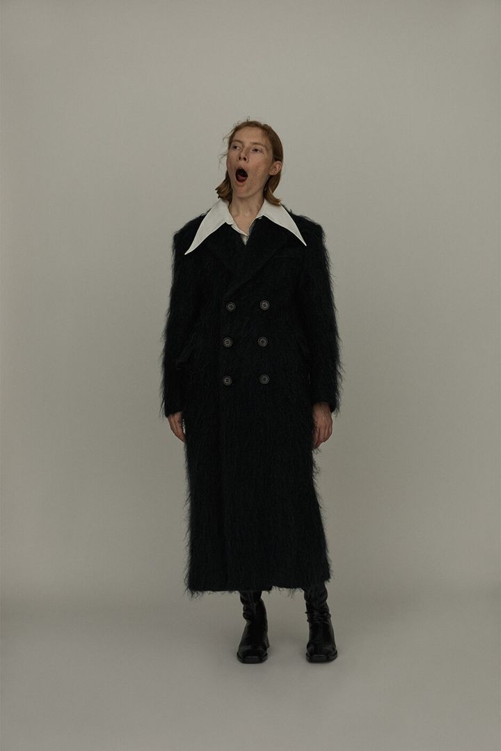 coat by FETICO, shirt by CAMEO, boots by JEFFREY CAMPBELL
