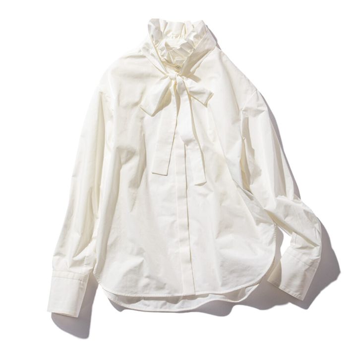 一枚でもレイヤードでもサマになるブラウスは、首元と手元のデザイン性がポイント。¥29,700(マルティニーク/マルティニーク ルミネ横浜)