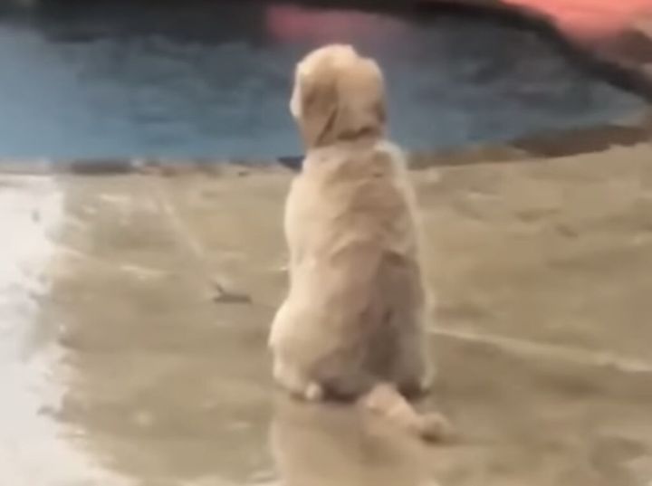 ぼ~っと空から降ってくる雨を眺めている犬さん。