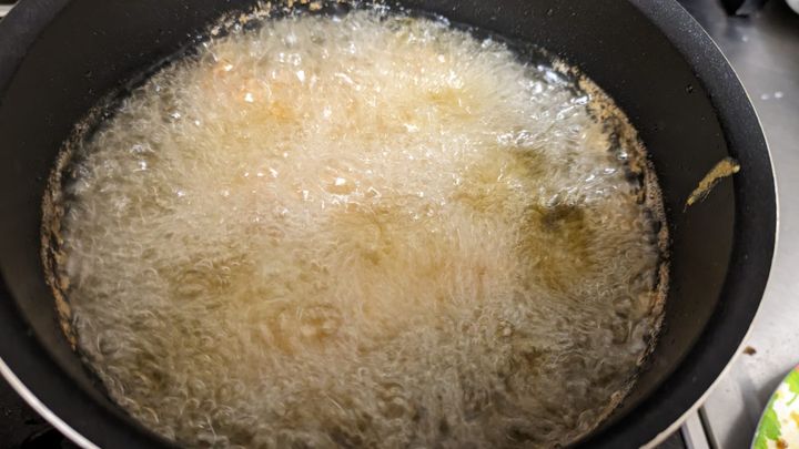 3分くらい揚げて、中をちらっと見て火が通っていればできあがり!夜ごはんのメインメニューの完成です。