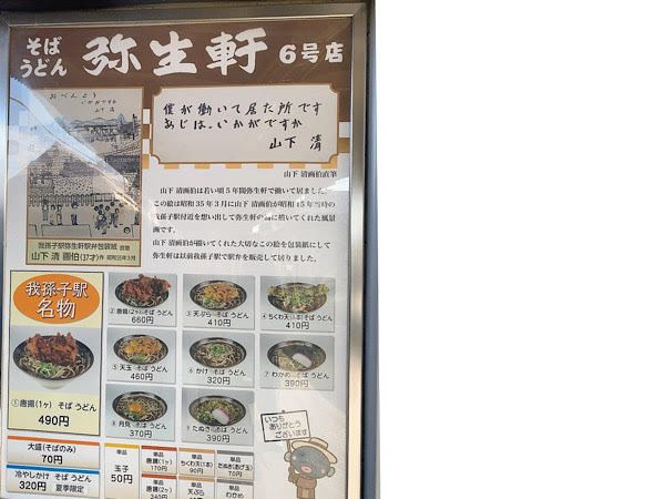こちらのお店、我孫子駅の常磐快速線1.2番ホームにあります。実は弥生軒さんは同じ我孫子駅内に全部で4店舗も!あるそうです。