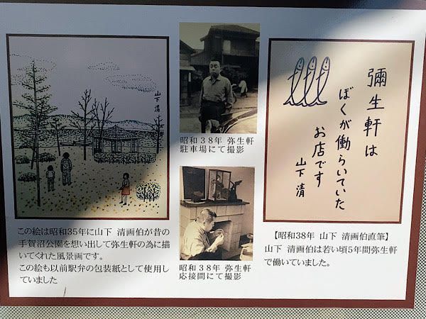 弥生軒さんの歴史は古く、かつては裸の大将で有名な山下清画伯が、こちらで働かれていたそうです。店先には画伯のメッセージが飾ってありました。