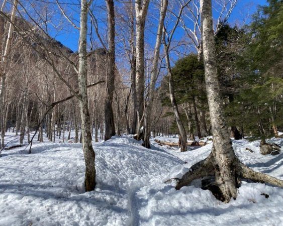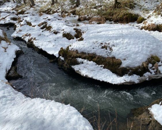 途中の川です。凍ってはいませんでしたが、触ってみるとすごく冷たかったです。こういう自然の中の川の音とか透き通った水って癒されますよね!