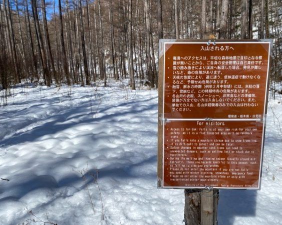 だいたい2時間くらい歩くと入山です。注意事項がありますので、よく読んでというか来る前に確認すべきことですね。
