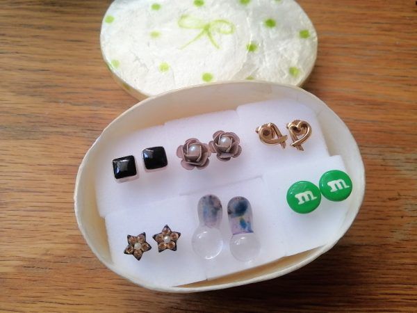 メラニンスポンジにカッターで切れ込みを入れれば、イヤリングや指輪も収納できます。