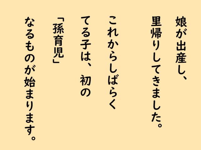 これからしばらくてる子さんは初めての孫育児なるものが始まります。