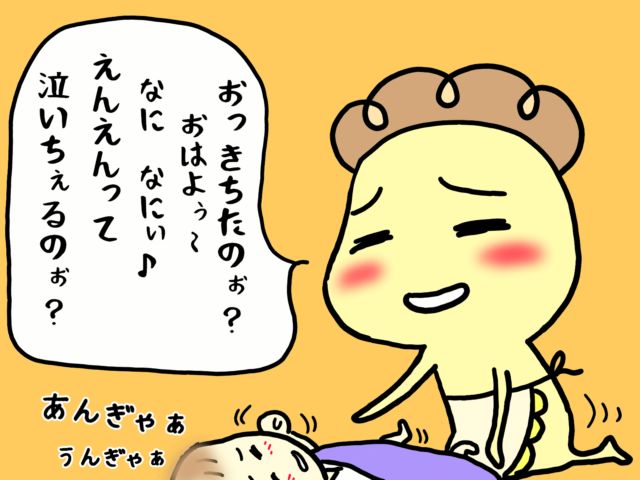 「おっきちたのぉ?おはよぅ~なになにぃ。えんえんって泣いちぇるのぉ?」