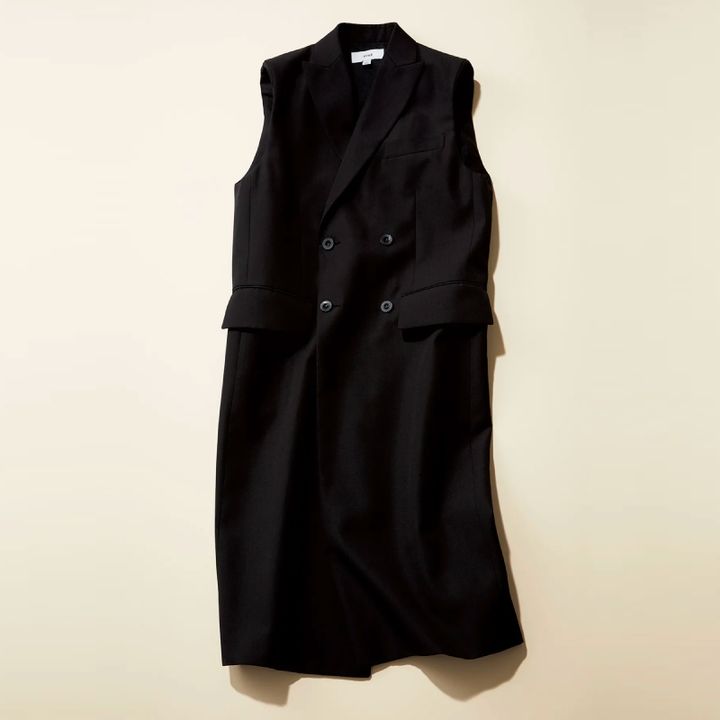 ハリのある素材とフラップポケットで、オケージョンにもカジュアルにも自信を持って着られるデザイン。ジレ¥96,800(ハイク/ボウルズ)