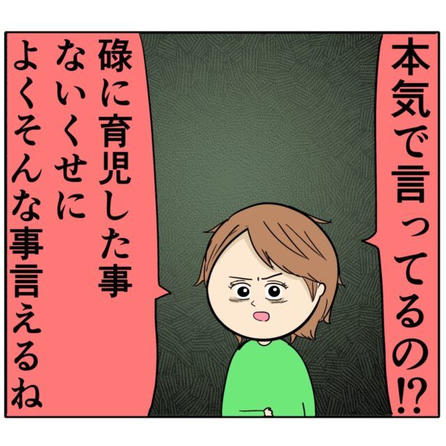 「本気で言ってるの!?ろくに育児した事ないくせによくそんな事言えるね」