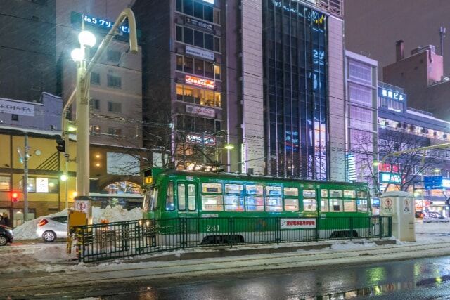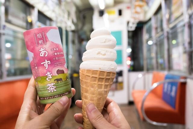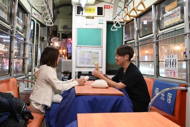 北海道では温かい部屋でアイスクリームを食べる文化がありますが、温かい市電の中で楽しむ特別な体験です。