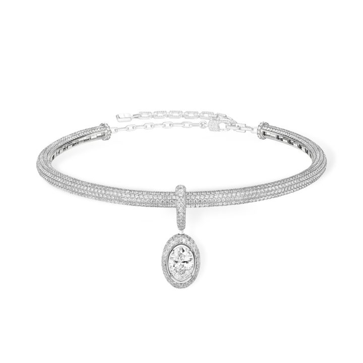 今年2月、パリで開催された仏大統領夫人のブリジット・マクロンが会長を務める大規模なチャリティ活動のため開催されたコンサートに、メシカのジュエリーを身に着けて来場したリアーナ。パートナーであるエイサップ・ロッキーのパフォーマンスを見守る彼女の胸元には、ダイヤモンドのチョーカーがキラリ。