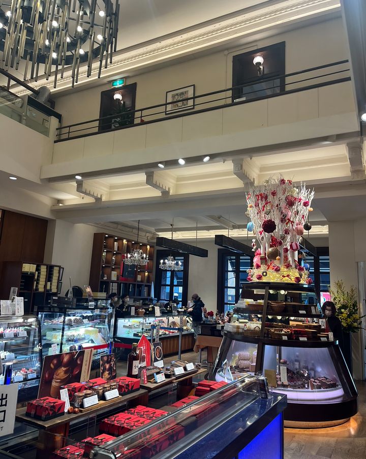 ここは昔執務室だった部屋がケーキサロンとなっており、高い吹き抜けの天井と大正時代の西洋建築ならではの重厚で豪華な雰囲気です✨