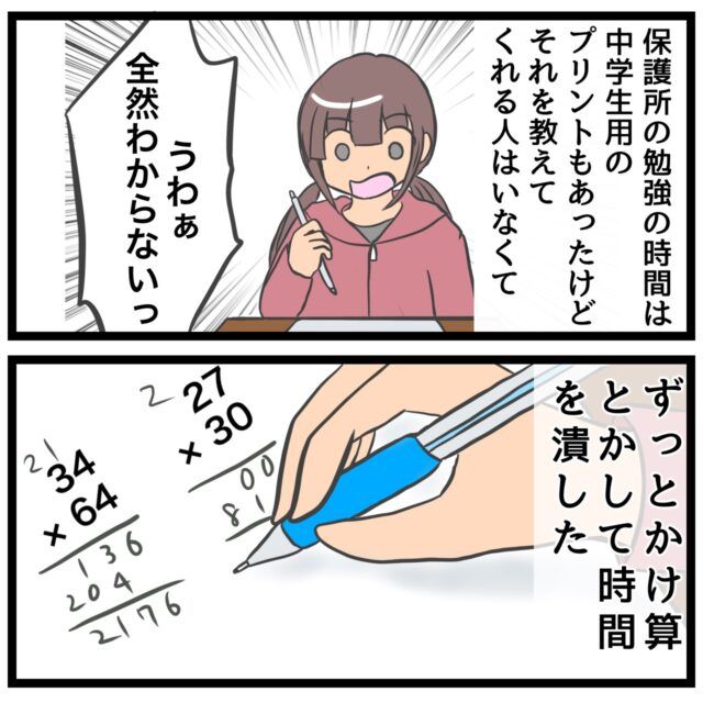 保護所には勉強の時間もありましたが、中学生用のプリントの内容が難しくて分からなくても