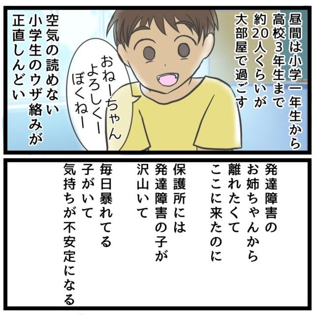 保護所には発達障害の子がたくさんいて暴れていたので、