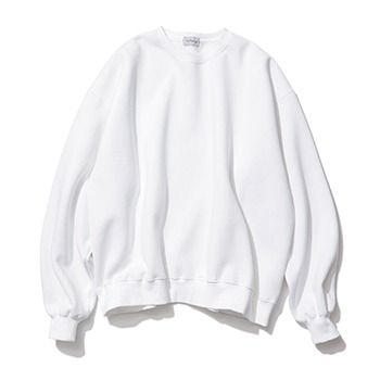 白ボリュームスウェット 9,900円/SeaRoomlynn ジャケットやコートの下にも着込める程度のゆったり感。そでをロールアップしてカーヴィーなフォルムにできる着くずしがいもある1着。裏起毛であたたかさもありながら、手入れもイージー。
