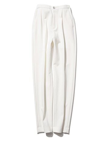 白ストレートパンツ 26,400円/ENFÖLD 上品なハリと厚みが魅力のダブルクロス生地。センタープレス入りながら、ウエストはゴムで見た目以上に着心地はラク。