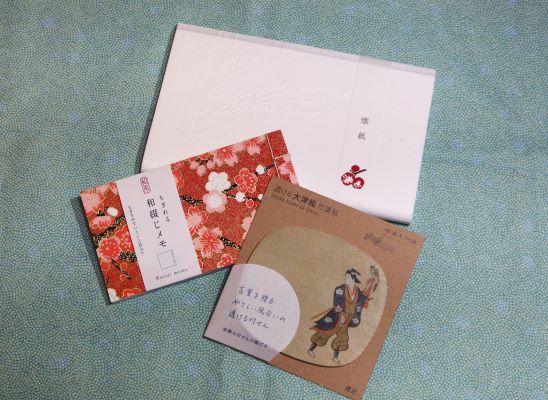 ミュージアムグッズは、和綴じのちぎれるメモ帖(330円)、大津絵付箋 鷹匠(550円)、懐紙 梅図(500円)を購入。 和綴じのちぎれるメモ帖は春らしい図柄の表紙で、ページがちぎれるので便利です。 奥高麗茶碗の魅力と謎にもっと迫れる新刊図録『謎解き奥高麗茶碗』(1,500円)もオススメです。