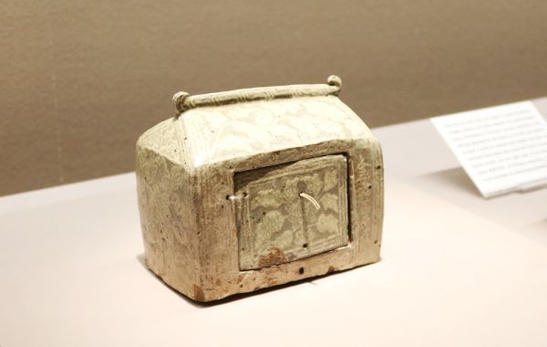 牡丹文様が可愛らしい《粉青象嵌牡丹文厨子(ふんせいぞうがんぼたんもんずし)》
