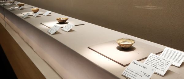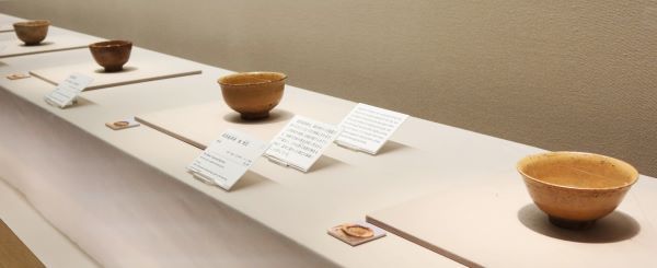 朝鮮半島から渡来した陶工が作ったとされる《奥高麗茶碗》(右)。その特徴から高麗茶碗の祖型とされる「熊川(こもがい)」と称されている茶碗に似ていると言われています。 口縁が外反し、腰の部分は厚く、釉薬が何回も掛けられて、高台内に独特の削りが見られるそうです。 秀吉(ひでよし)の朝鮮出兵(ちょうせんしゅっぺい)、文禄・慶長の役(ぶんろく・けいちょうのえき)(1592年~1593年、1597年~1598年)で、唐津の名護屋城に布陣していた古田織部(ふるたおりべ)と唐津焼との関わりを思わせる書状も残っているそうです。 奥高麗茶碗が作られたのは1600年から20年間ほどの短い期間でした。展示では、奥高麗茶碗の変遷をたどることが出来ました。 「茶の湯の茶碗」として特別に作られた奥高麗茶碗。高麗茶碗の素朴な美しさを求めて日本でも作り出そうと生まれたことは確かなようです。