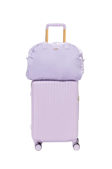 パープルキャリーケース(45×33×21) 19,800円、上に乗せたバッグ(24×38×14) 3,850円/ともにROPÉ PICNIC(トレードワークス)