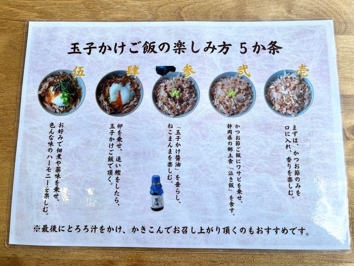 ● 《玉子かけご飯の楽しみ方 5か条》を見ながらいただくのが◎
