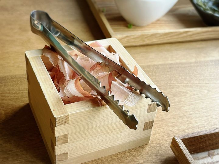 追いかつお節は、こちらの枡に入れてスタッフさんが持ってきてくださいます。