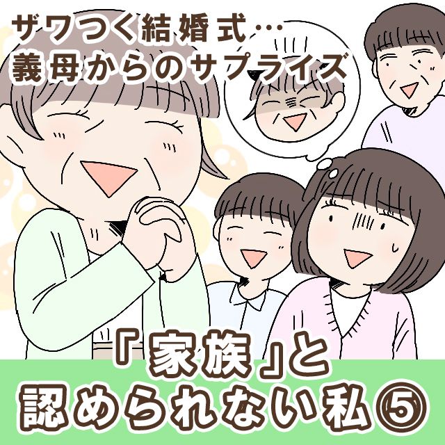 [5-1]ザワつく結婚式。義母が起こしたサプライズ。「家族」と認められない私|ママ広場マンガ
