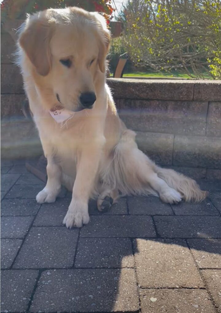 飼い主さんと公園にお散歩に来ていたゴールデンレトリバーですが、この子は楽しそうな雰囲気ではありません。 歩くのを止めて、じっと何かを見つめています。