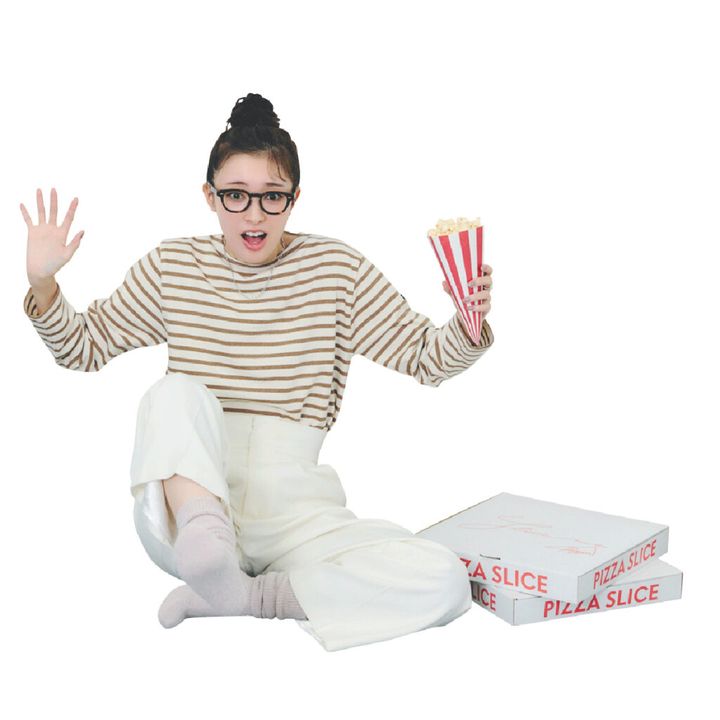 白ワイドパンツ着回し ボーダーロンT¥13,200(セント ジェームス/セント ジェームス代官山店)ソックス¥2,420(タビオ)メガネ¥40,700(アイヴァン/アイヴァン 東京ギャラリー)ネックレス¥14,300(トゥエンティー エイティー/UTS PR)リング¥15,400(オンブル ビジュー/フォーティーン ショールーム)