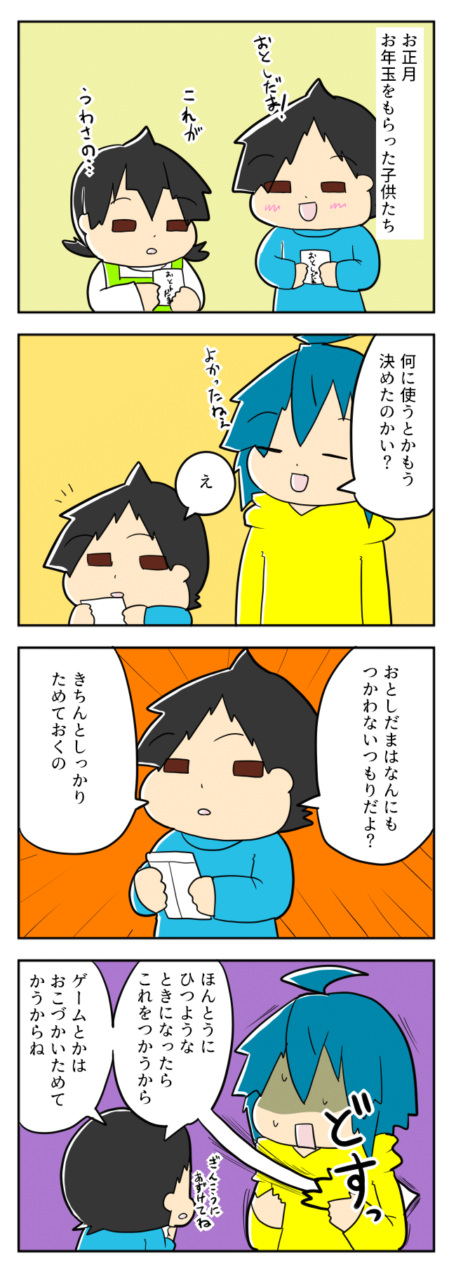 母はお年玉をもらうとすぐにお菓子や漫画に使ってしまう、しょうもない使い方をしてきていたので