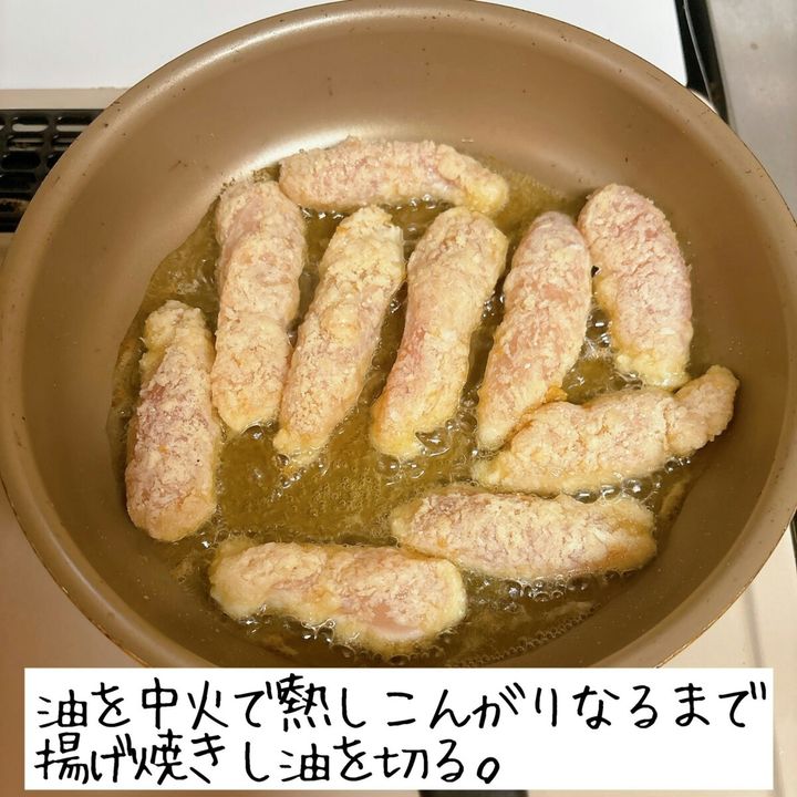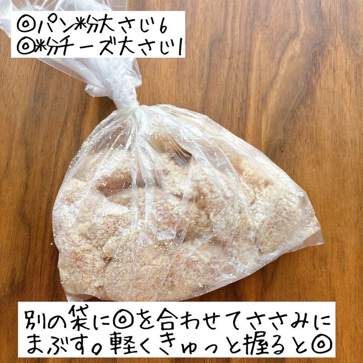 3. ポリ袋で味付け→揚げ焼きだけ!ささみで作る「チーズスティックチキン」レシピ