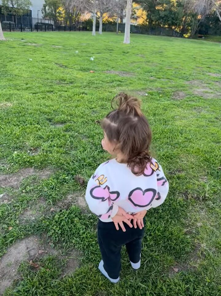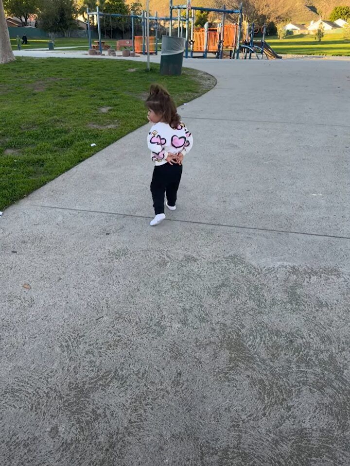 独特な歩き方をしている幼い女の子。 実は”ある人”の真似をしているところだったみたい!